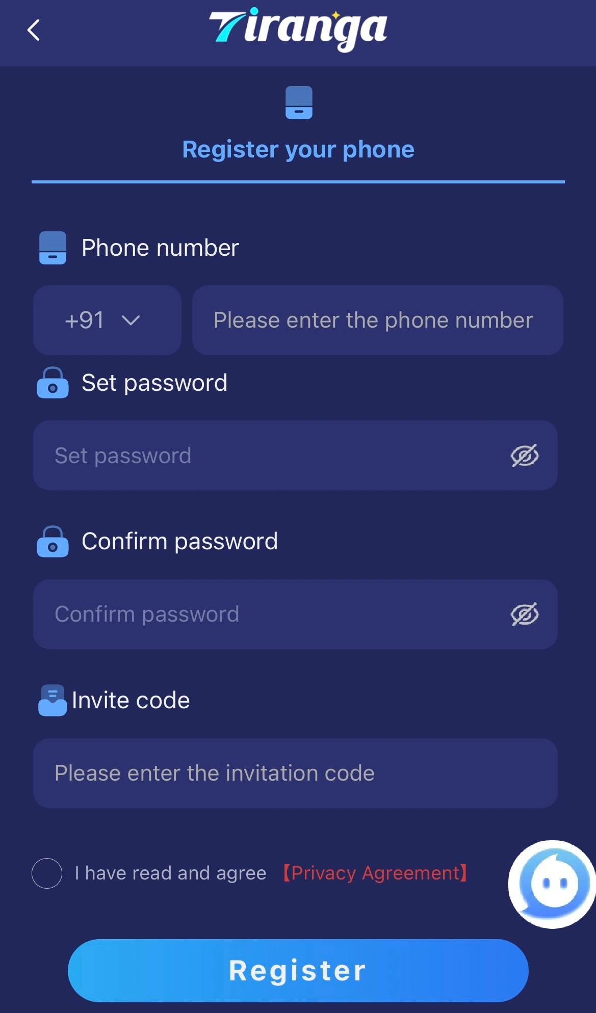 Creating a new account on Tiranga Game is a quick and straightforward process. Follow these six simple steps to get started and claim your ₹500 welcome bonus.